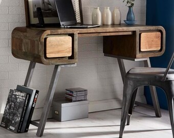Custom oak and steel metal computer writing furniture small rustic.